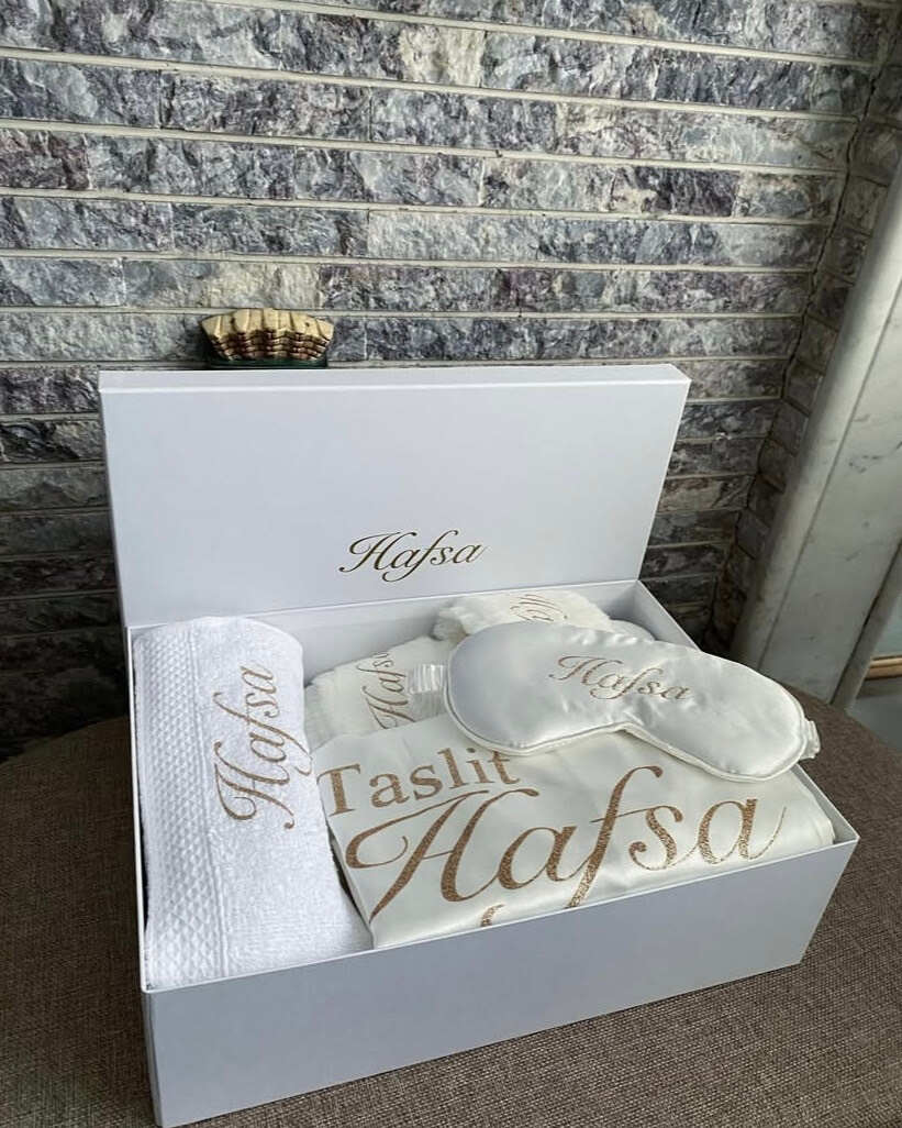 coffret : avec peignoir, chaussons, masque de sommeil, essuie